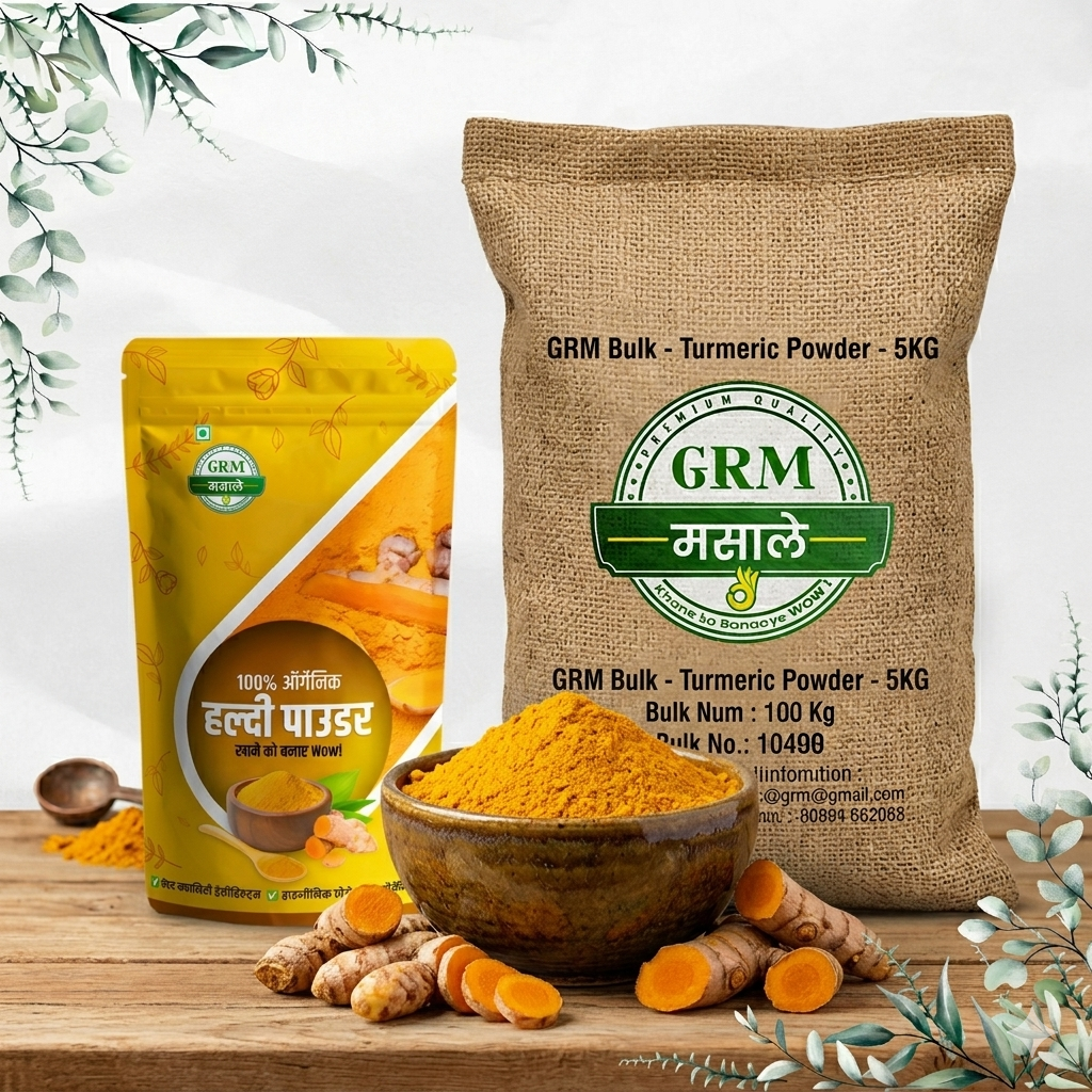 GRM Masale Haldi Powder is made from carefully selected, high quality turmeric roots that are cleaned, dried, and finely ground to preserve their natural color and nutrients. Free from artificial colors and preservatives, our turmeric adds rich golden color, earthy flavor, and purity to every dish.