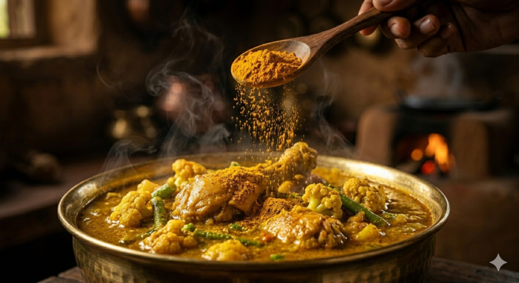 Our Haldi Powder has a naturally bright golden-yellow color that enhances the visual appeal of your food. It carries a warm, earthy aroma and a mildly bitter yet balanced taste that blends beautifully into curries, dals, and vegetables. Its fine texture ensures smooth mixing and even flavor distribution.