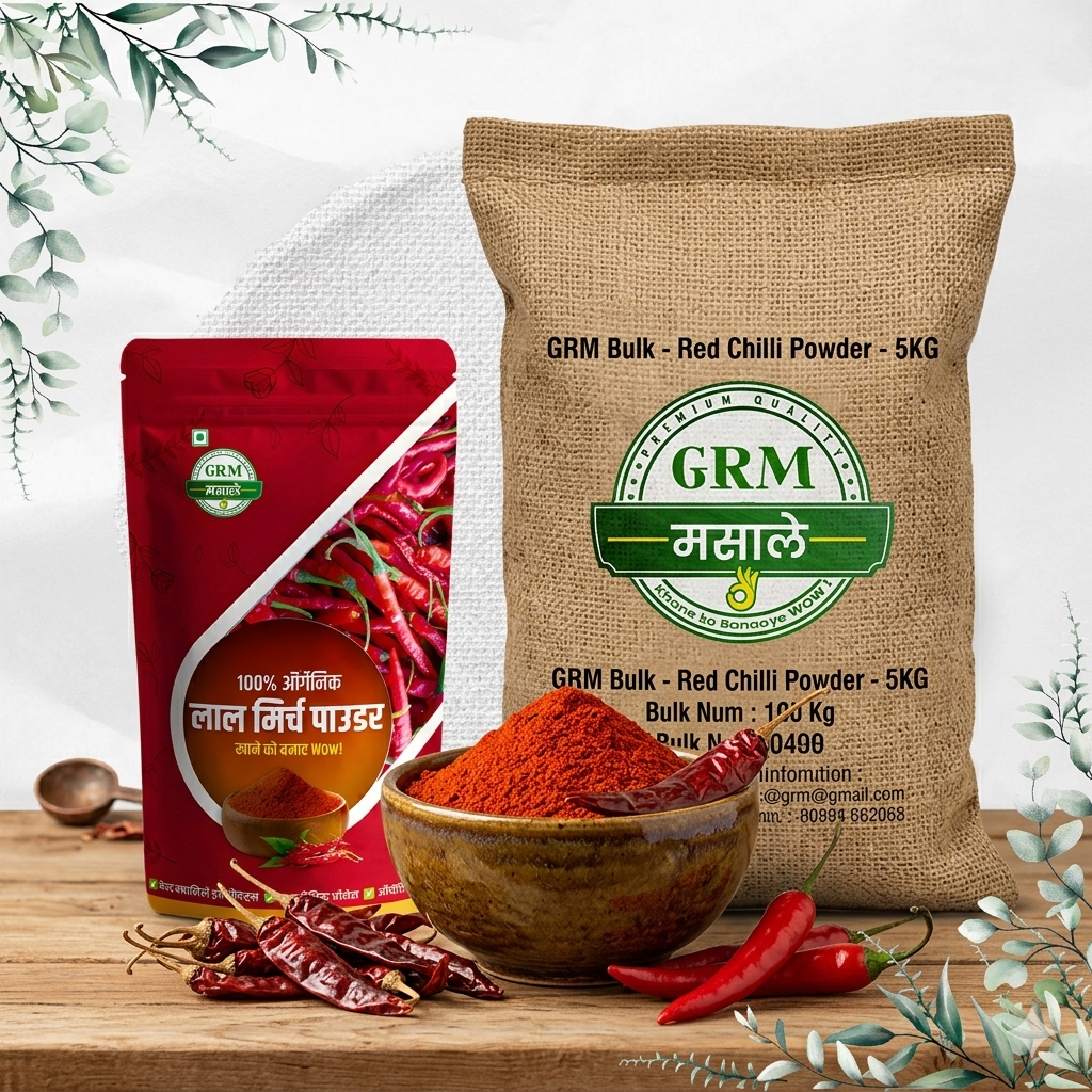 GRM Masale Red Chilli Powder is made from carefully selected, high-quality dried red chillies, finely ground to deliver vibrant color and balanced heat. Free from artificial colors and preservatives, our chilli powder enhances the taste and appearance of every dish while maintaining natural purity.